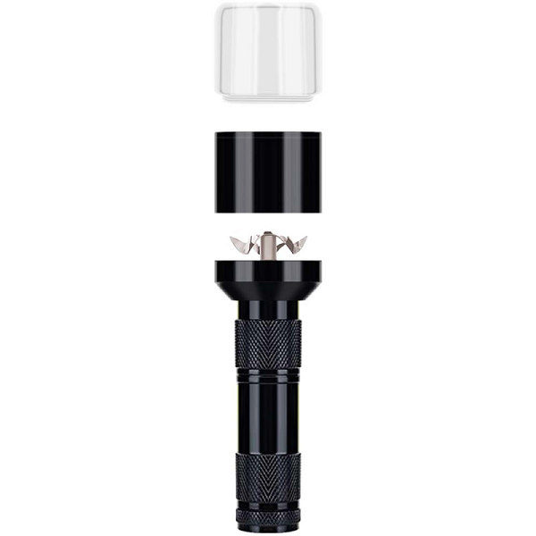 Elektro Grinder Ausführung:elektrischer Metallgrinder mit Pollensieb, der an eine Taschenlampe erinnertØ ca.:40mmHöhe ca.:18cmFarbe:schwarz