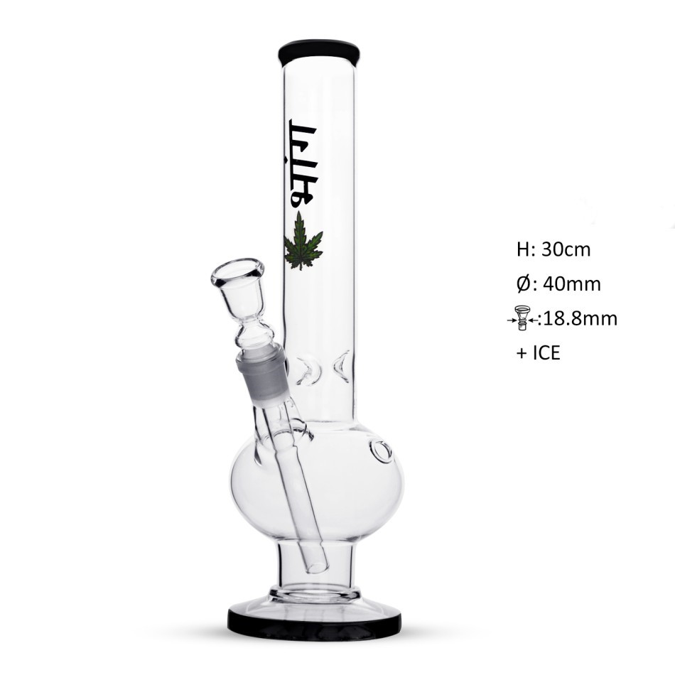 Ausführung:Kugel mit Eisnoppen & StandfußLogo:Bullet Zone LogoHöhe ca.:30cmØ ca.:40mmChillum:standardChillum-Schliff:18.8erChillum-Länge ca.:12.5cm