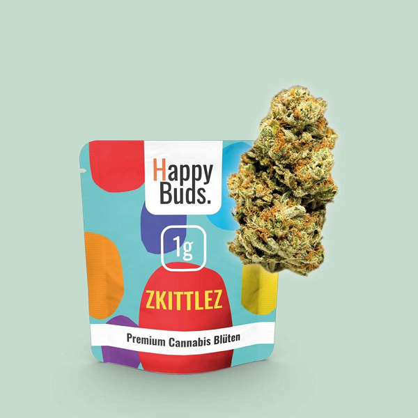 Zkittlez CBD Blüten: Unsere Premium CBD Blüten werden ausschließlich aus EU-zertifiziertem Nutzhanf gewonnen, wobei gänzlich auf Pestizide, Herbizide oder chemische Dünger verzichtet wird. Wir von HappyBuds garantieren einen hohen Qualitätsstandard für jede einzelne Produkt-Charge. Das spiegelt sich auch im herausragenden Terpenprofil wider.